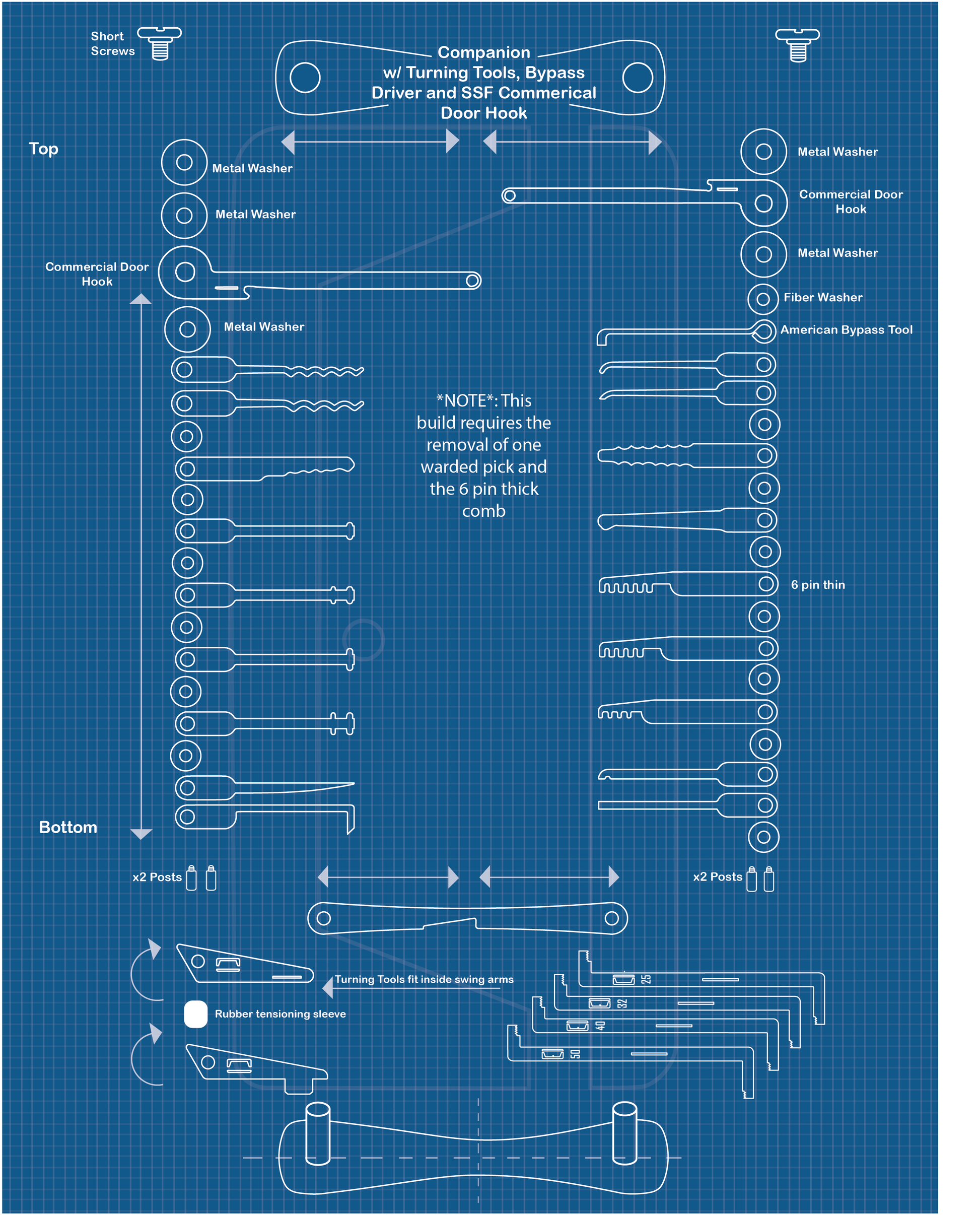 This expansion kit for the Covert Companion allows you to open Adams Rite style locking hardware (the most common storefront locks in North America) by hooking the actuating mechanism, and directly unlocking the bolt… There’s no need to touch the lock cylinder. This is an absolute “must have” bypass tool for any locksmith or entry specialist.