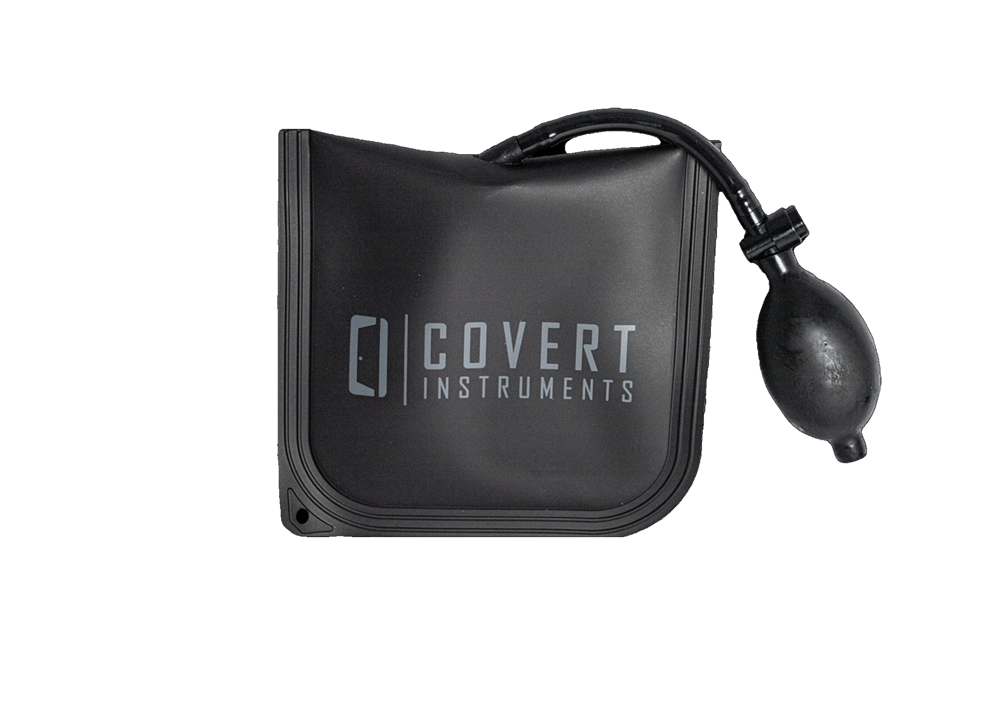 An air wedge is an important tool which can be used to weaken otherwise secure doors. You can use air wedges to create space for other tools such as lifting the bottom of a door to enable the use of an under door tool, or it can be used to separate doors from their frames which when done properly can disengage the deadlatch and allow for the latch to be slipped with another tool.
