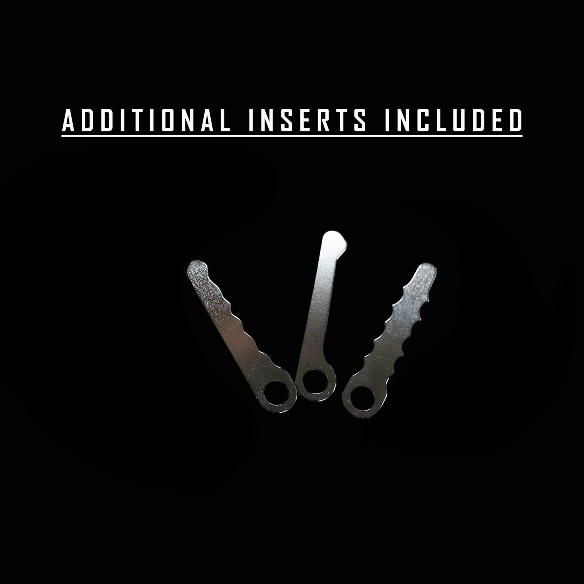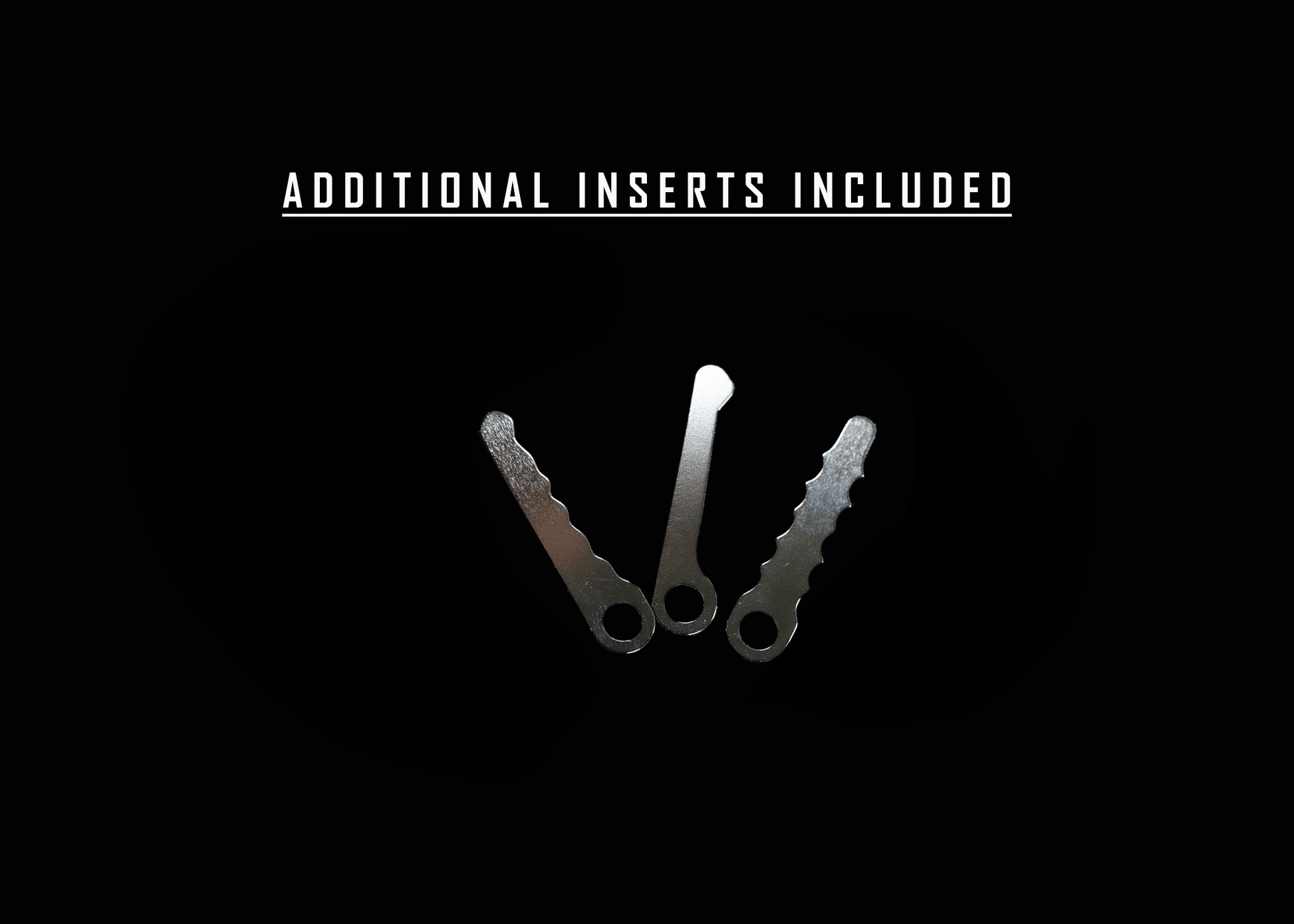 This Fidget Pick™ is made of steel and comes with the 3 comb pick profiles that are part of our Quad Comb Set and 3 jiggler pick profiles that are part of our Jiggler Pick Set:
