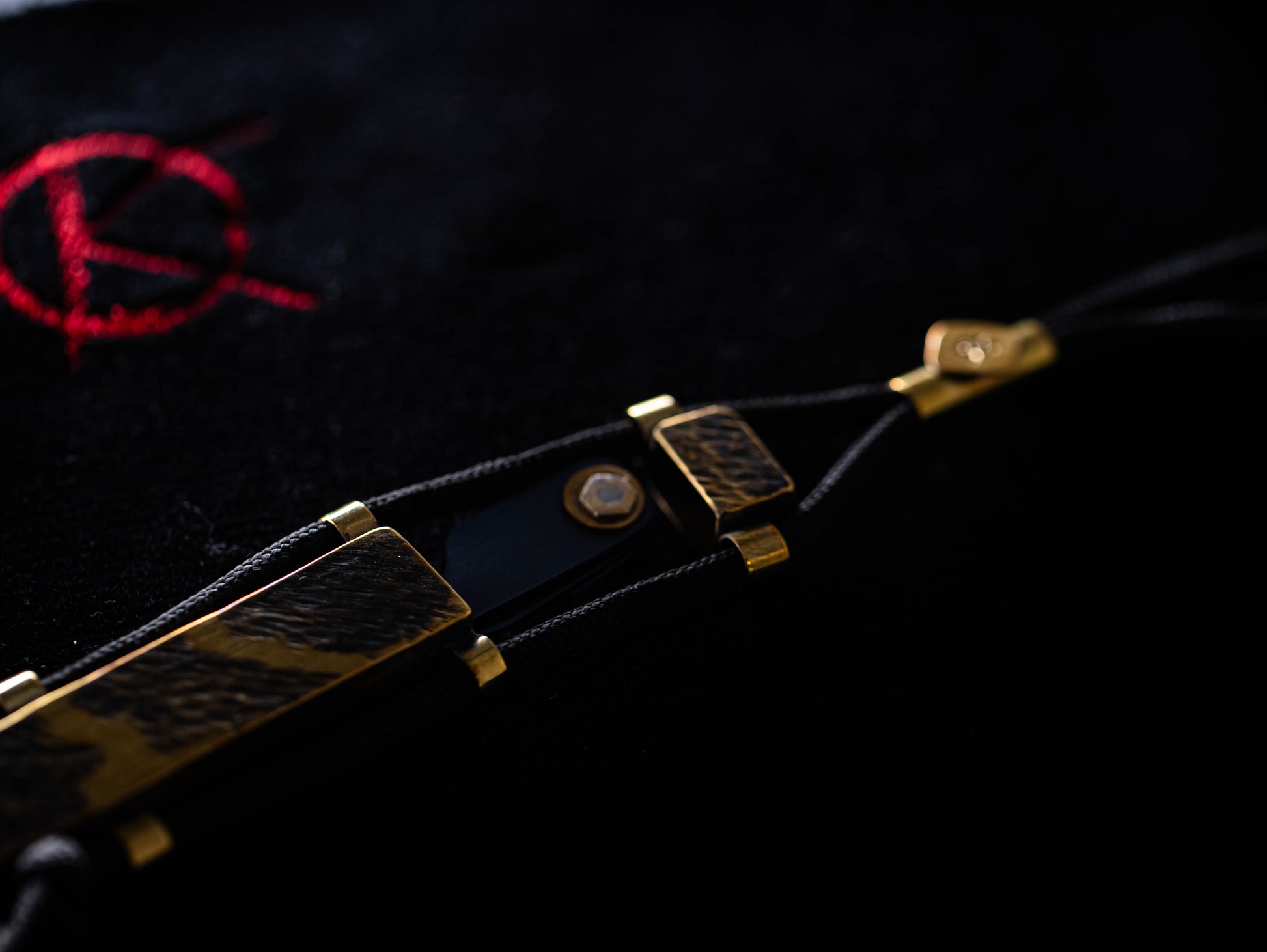 Inside, it carries a mini titanium jiggler set, and it also includes a signature tag woven into the lace.