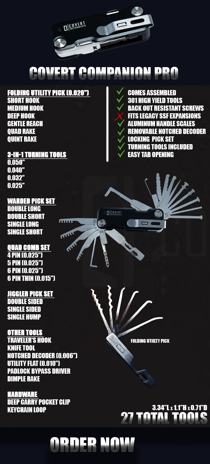 Over the years, the Covert Companion evolved through numerous expansion packs, eventually becoming one of the most well-rounded lock picking and lock bypass platforms ever created. While the Covert Companion Pro represents the pinnacle of that evolution.