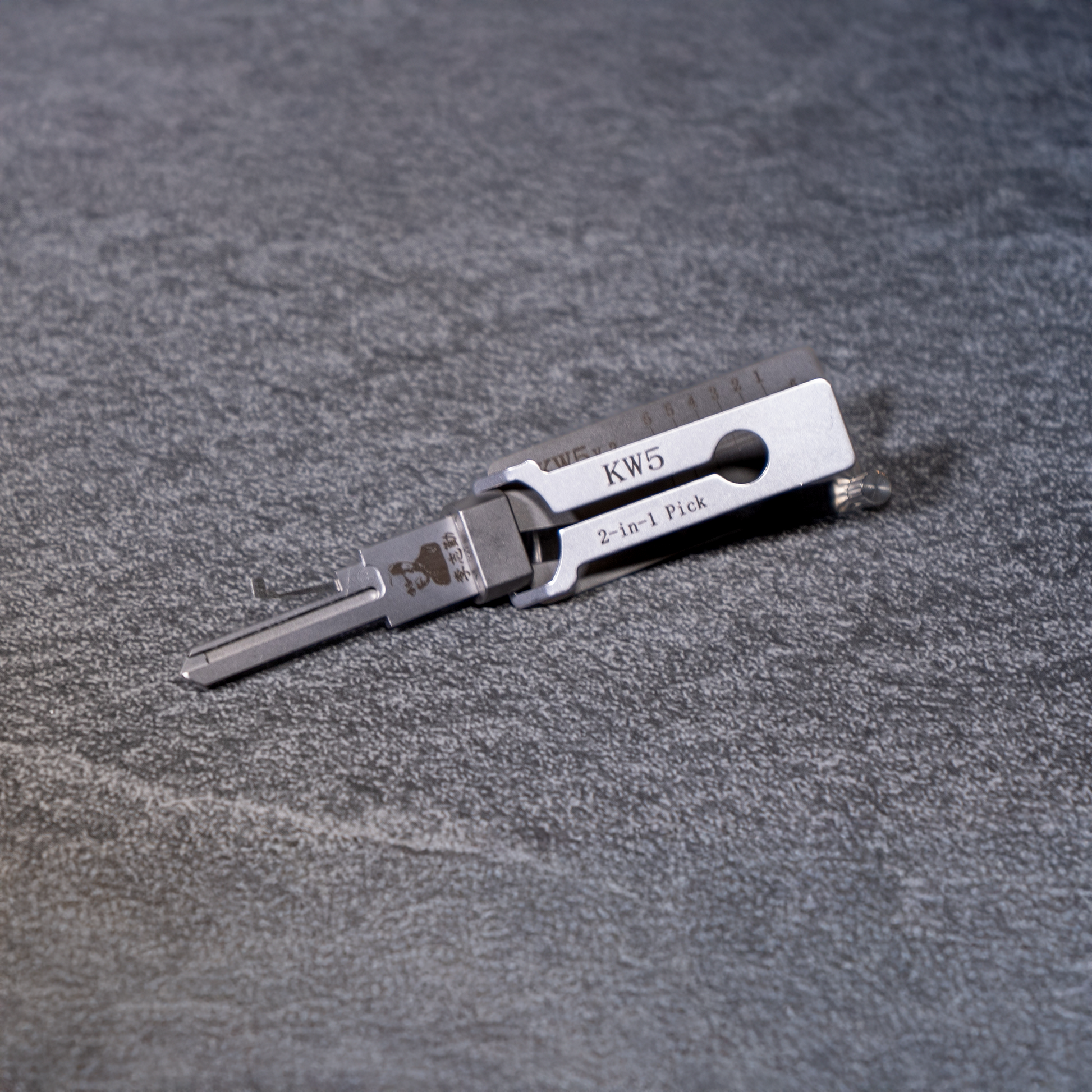 This Lishi variant fits in the KW (6 Pin) keyway commonly found on locks made by Kwikset and several other companies. This will not work in Kwikset SmartKey locks version 3 or newer.
