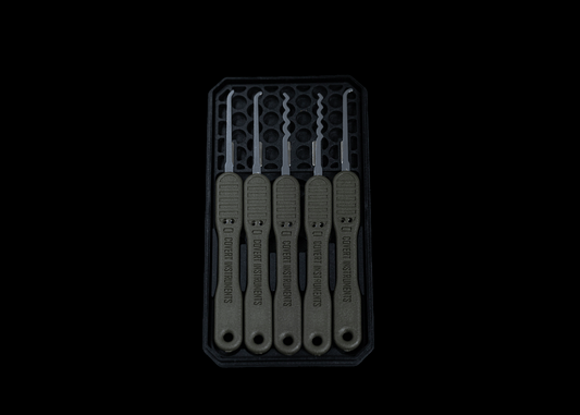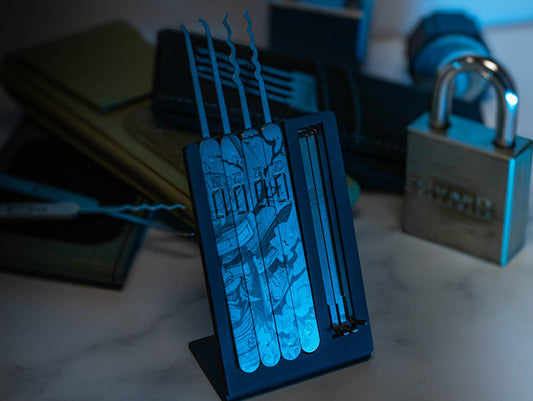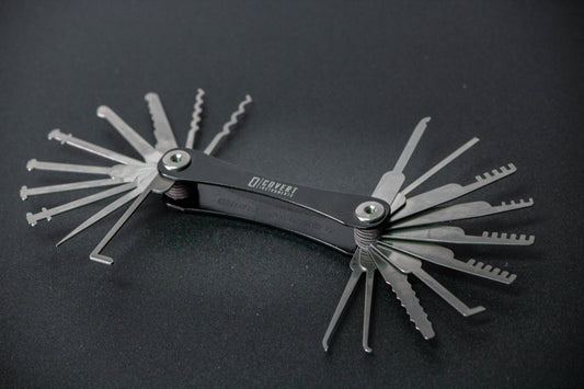 The Bogota set is an easily concealable set of tools that can be used to covertly open pin tumbler locks. Sitting at just over 3 inches these tools can easily fit within a wallet or pocket for discrete use in many situations.